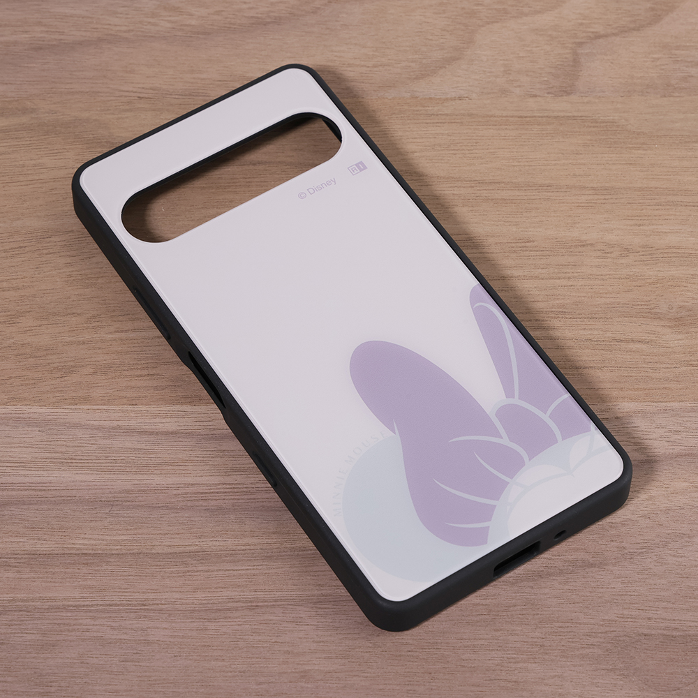 表面硬度2Hの背面に、シンプルで可愛いミニーのデザインをあしらったハイブリッドケース。
