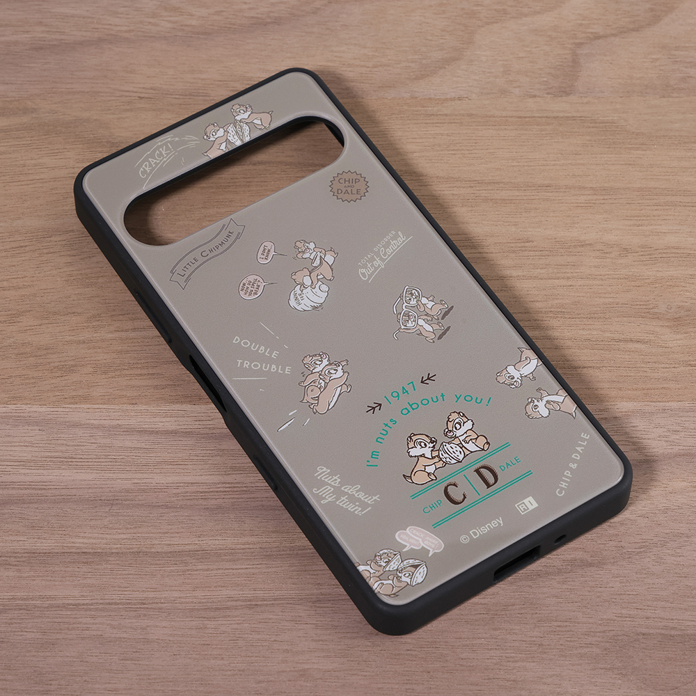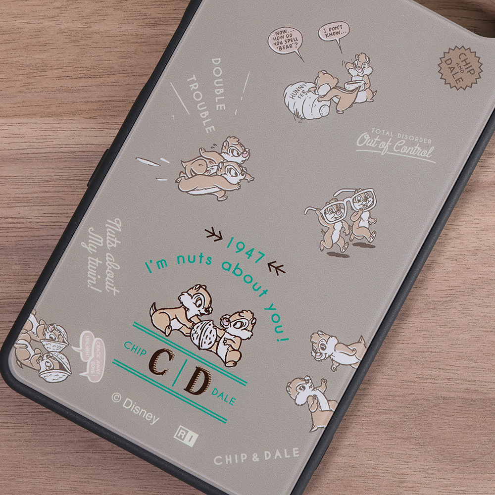 表面硬度2Hの背面に、チップ&デールのユーモラスなデザインをあしらったハイブリッドケース。