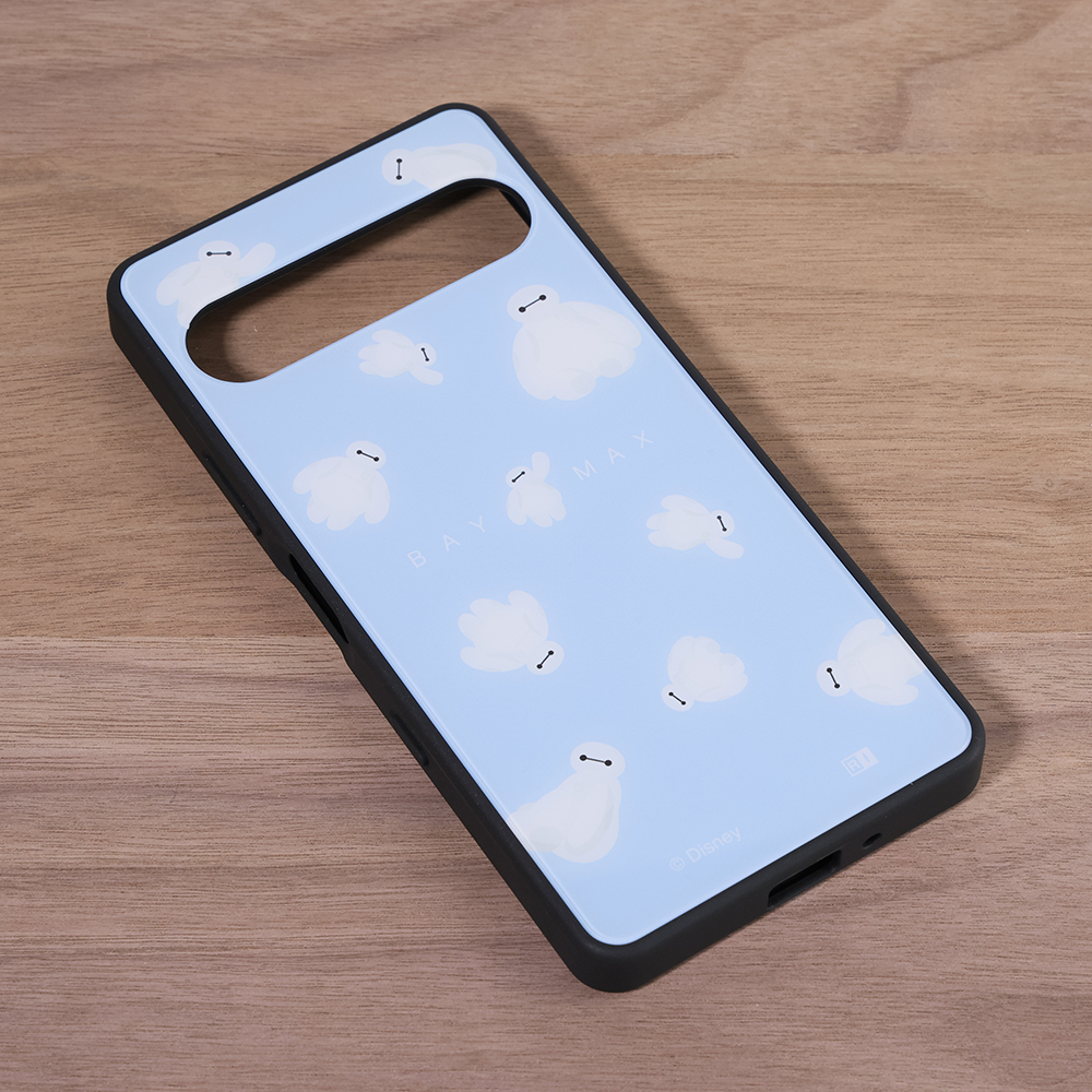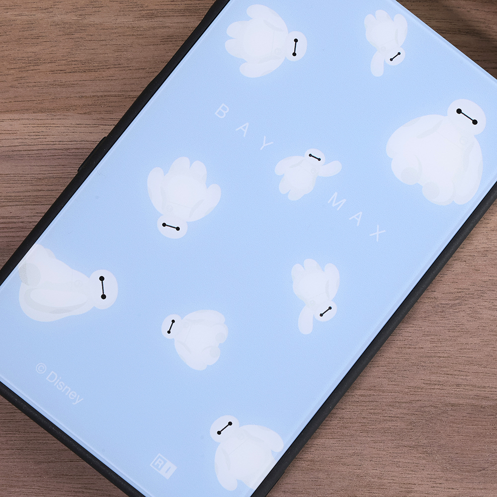 表面硬度2Hの背面に、かわいいベイマックスがふわふわ浮かんでいるようなデザインをあしらったハイブリッドケース。