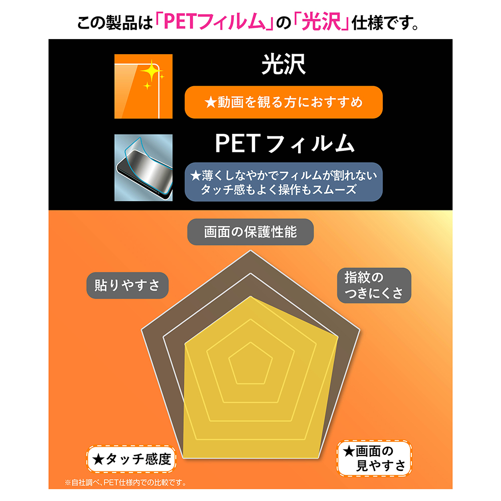 割れにくく、しなやかなPET素材を使用した光沢フィルム。