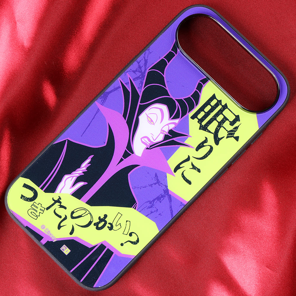 表面硬度2Hの背面に、ビビットな色味のマレフィセントとパワーワードをあしらったハイブリッドケース。