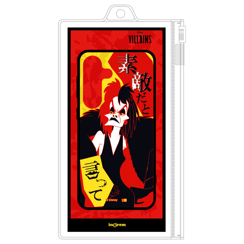 表面硬度2Hの背面に、ビビットな色味のクルエラとパワーワードをあしらったハイブリッドケース。