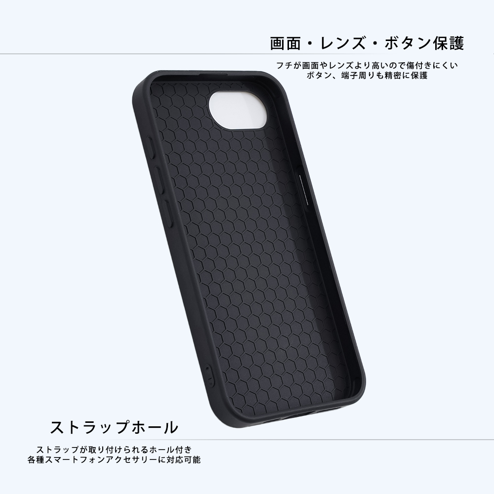 表面硬度2Hの背面に、ビビットな色味のハデスとパワーワードをあしらったハイブリッドケース。