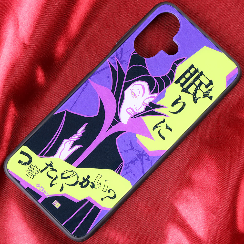 表面硬度2Hの背面に、ビビットな色味のマレフィセントとパワーワードをあしらったハイブリッドケース。