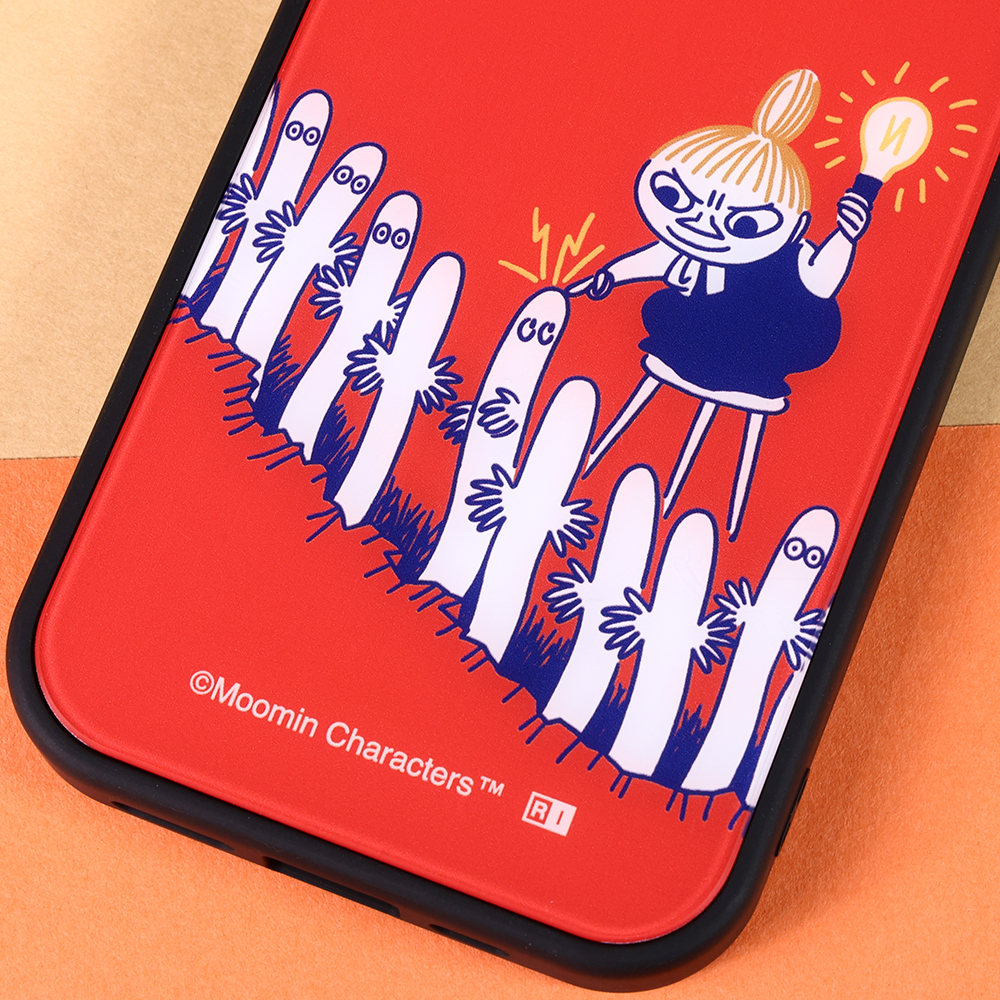 表面硬度2Hの背面にリトルミイとニョロニョロの可愛いデザインをあしらったハイブリッドケース。