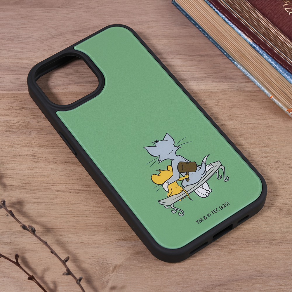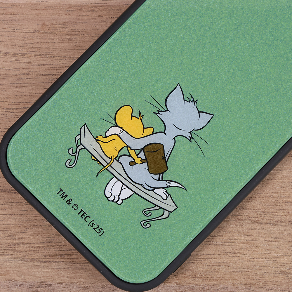 表面硬度2Hの背面に、トムとジェリーらしいデザインをあしらったハイブリッドケース。