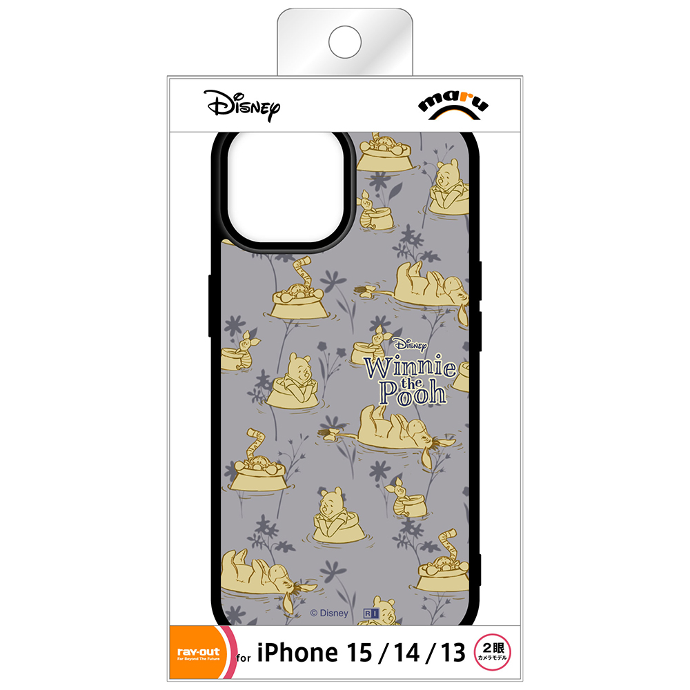 iPhone 15/14/13 / ディズニー / maru 衝撃吸収 バンパー ハイブリッドケース / プーさんと仲間達_総柄