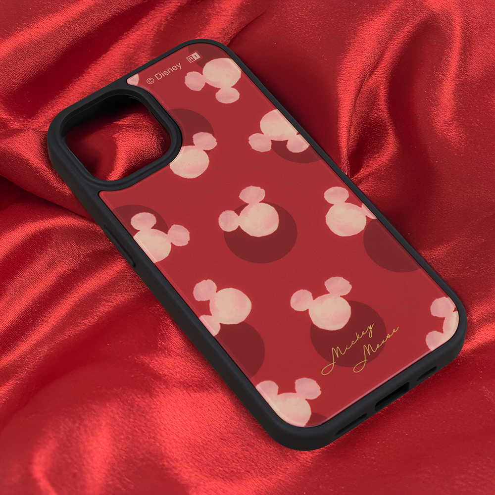 iPhone 15/14/13 / ディズニー / maru 衝撃吸収 バンパー ハイブリッドケース / ミッキーマウス_ドットレッド