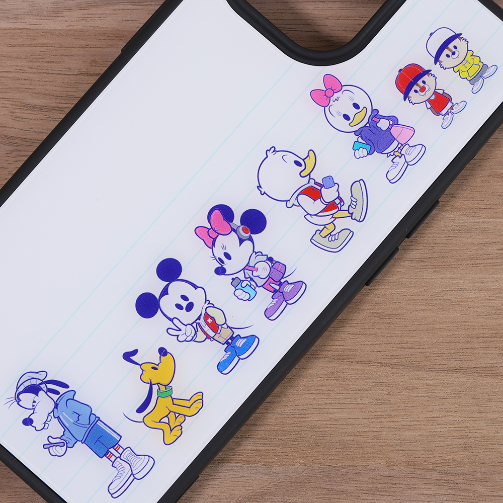 iPhone 15/14/13 / ディズニー / maru 衝撃吸収 バンパー ハイブリッドケース / ミッキー&フレンズ_背比べ