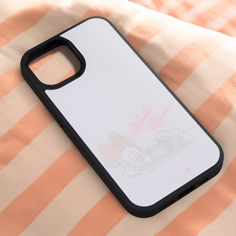 iPhone 15/14/13 / ディズニー / maru 衝撃吸収 バンパー ハイブリッドケース / ミニーマウス_フィガロとお昼寝