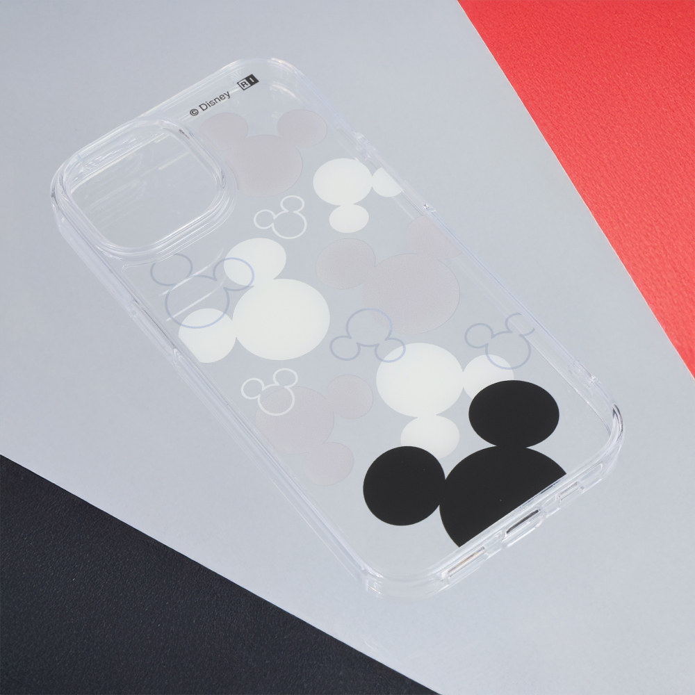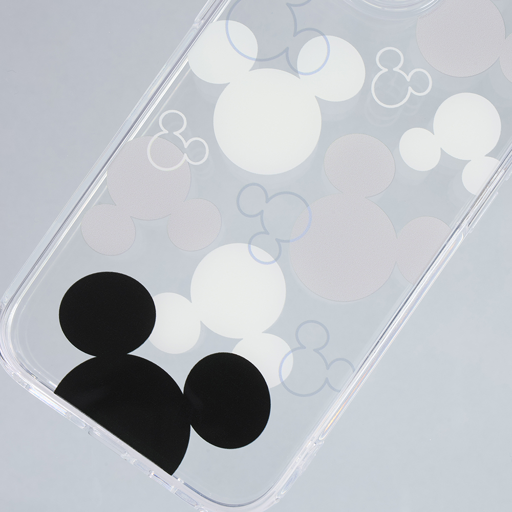 ミッキーの可愛いらしくシンプルなモチーフのデザインが楽しめる透明感のあるハイブリッドケース。