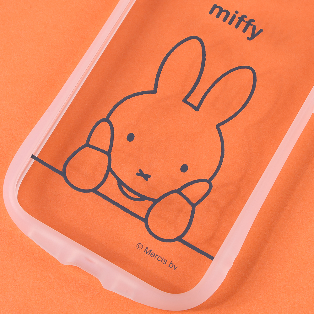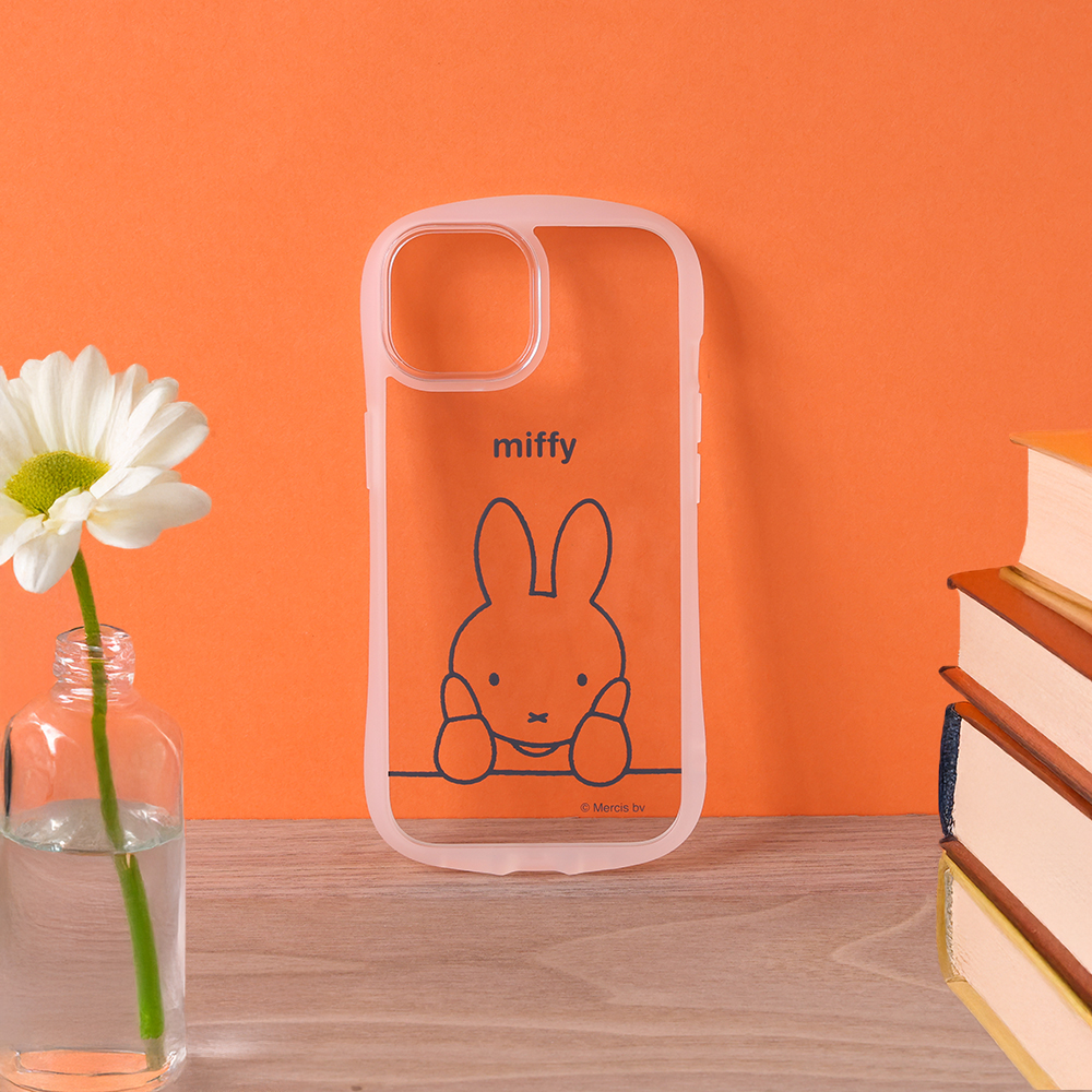 ほおづえをついている可愛いミッフィーが描かれたデザインと、衝撃に強い安心感を兼ね備えたハイブリッドケース。