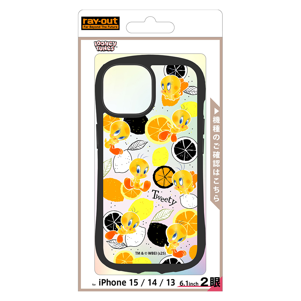 iPhone 15/14/13 / ルーニー・テューンズ / Puffull 衝撃吸収 バンパー ハイブリッドケース / トゥイーティー/総柄2
