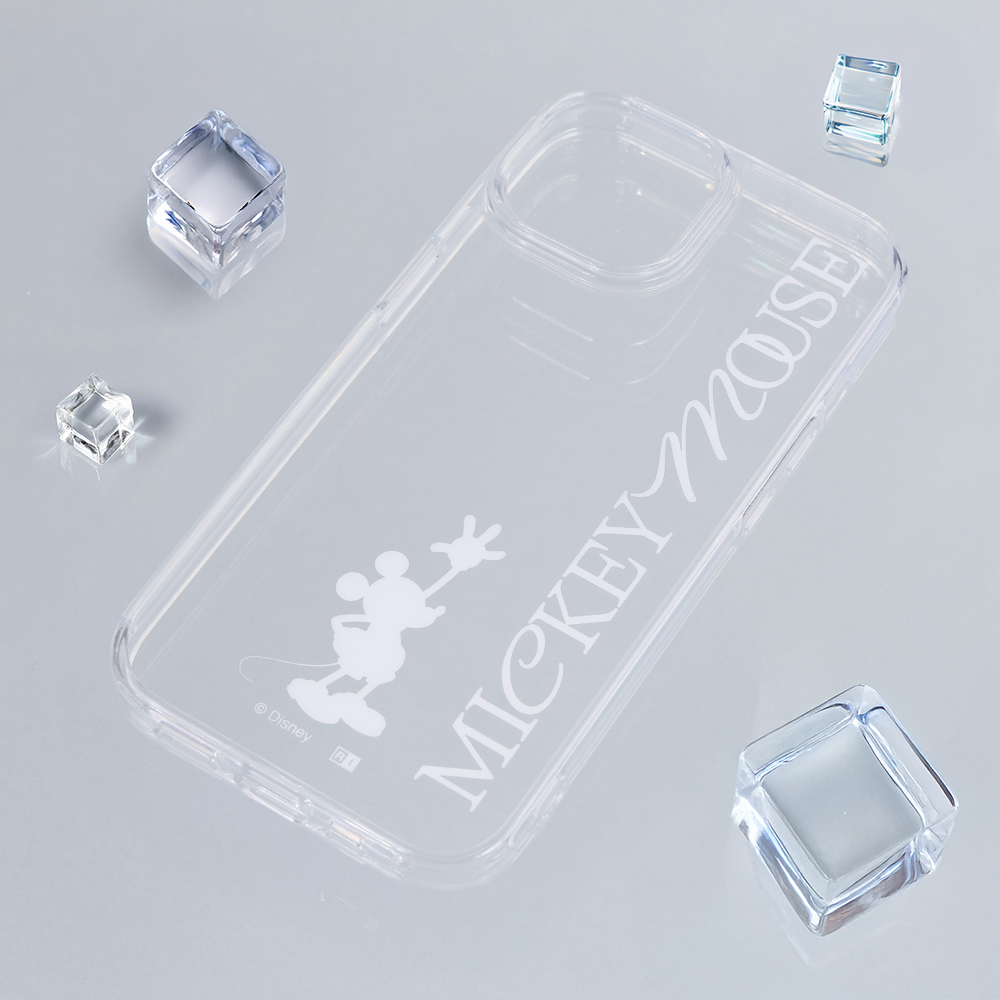 シンプルで可愛いらしいミッキーのデザインが楽しめる透明感のあるハイブリッドケース。