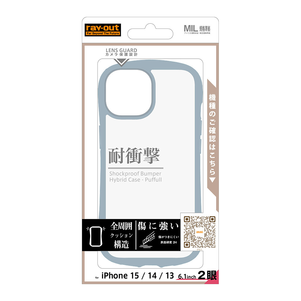 iPhone 15/14/13 / ハイブリッドタフケース Puffull +レンズガードリング / ブルー