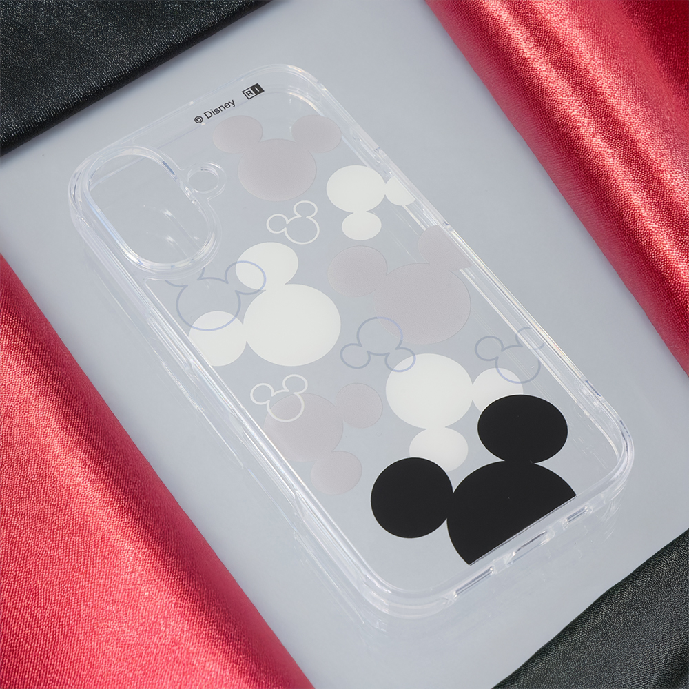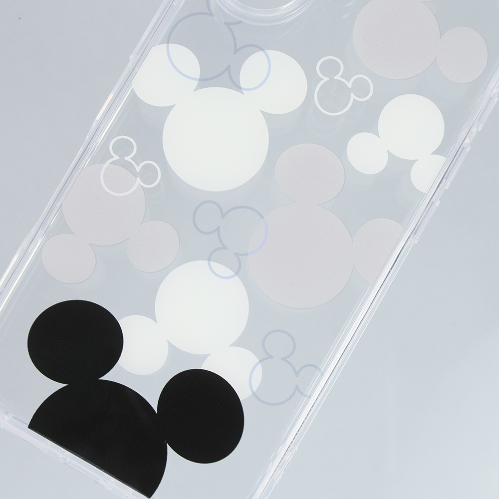 ミッキーの可愛いらしくシンプルなモチーフのデザインが楽しめる透明感のあるハイブリッドケース。