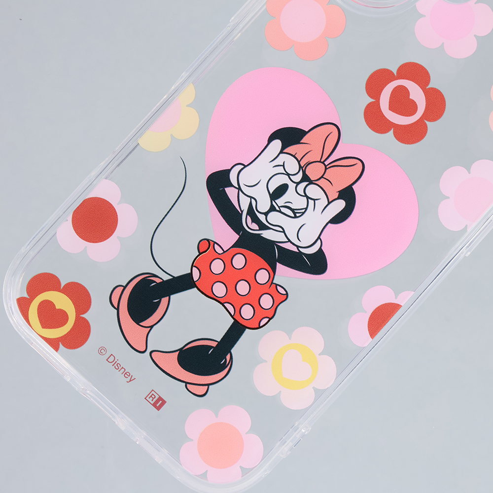 お花とミニーの可愛いデザインが楽しめる透明感のあるハイブリッドケース。