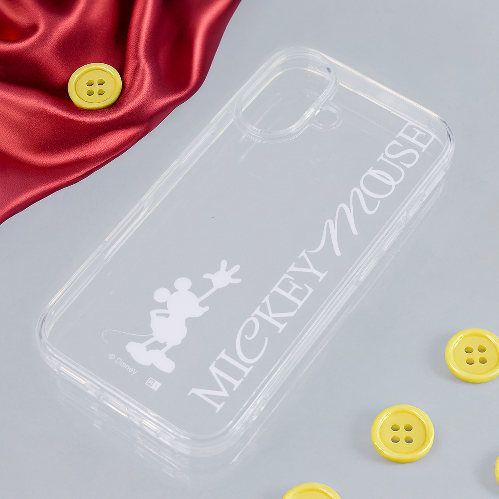 シンプルで可愛いらしいミッキーのデザインが楽しめる透明感のあるハイブリッドケース。