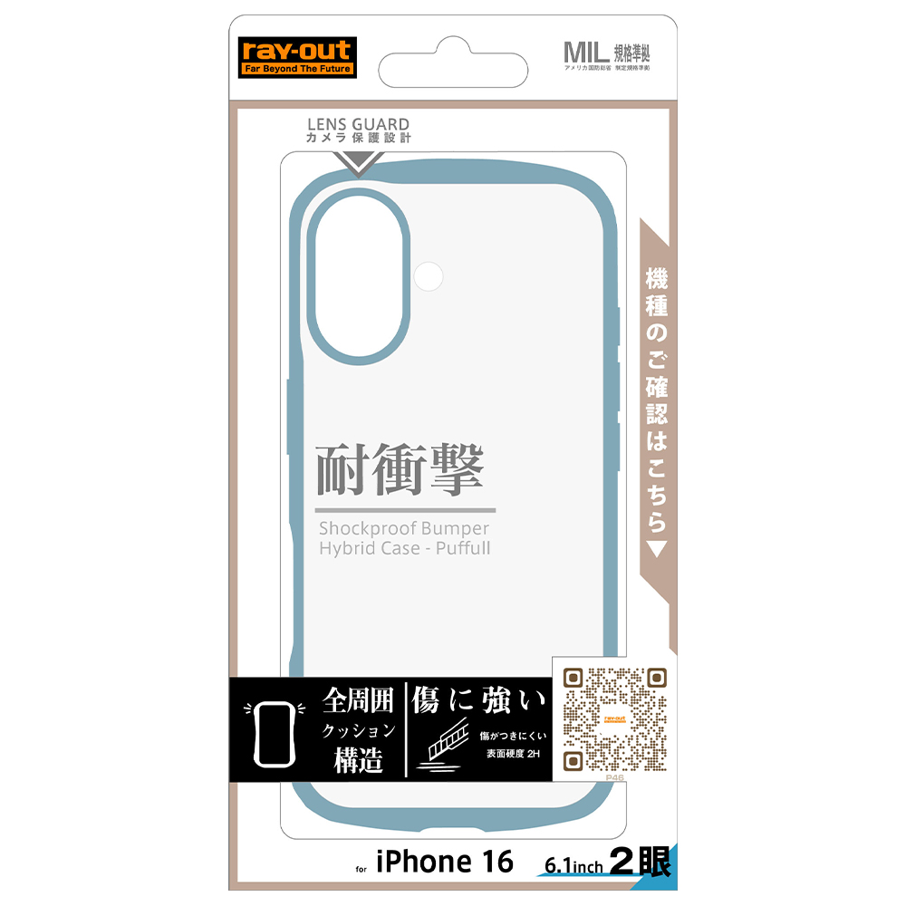 iPhone 16 / ハイブリッドタフケース Puffull +レンズガードリング / ブルー
