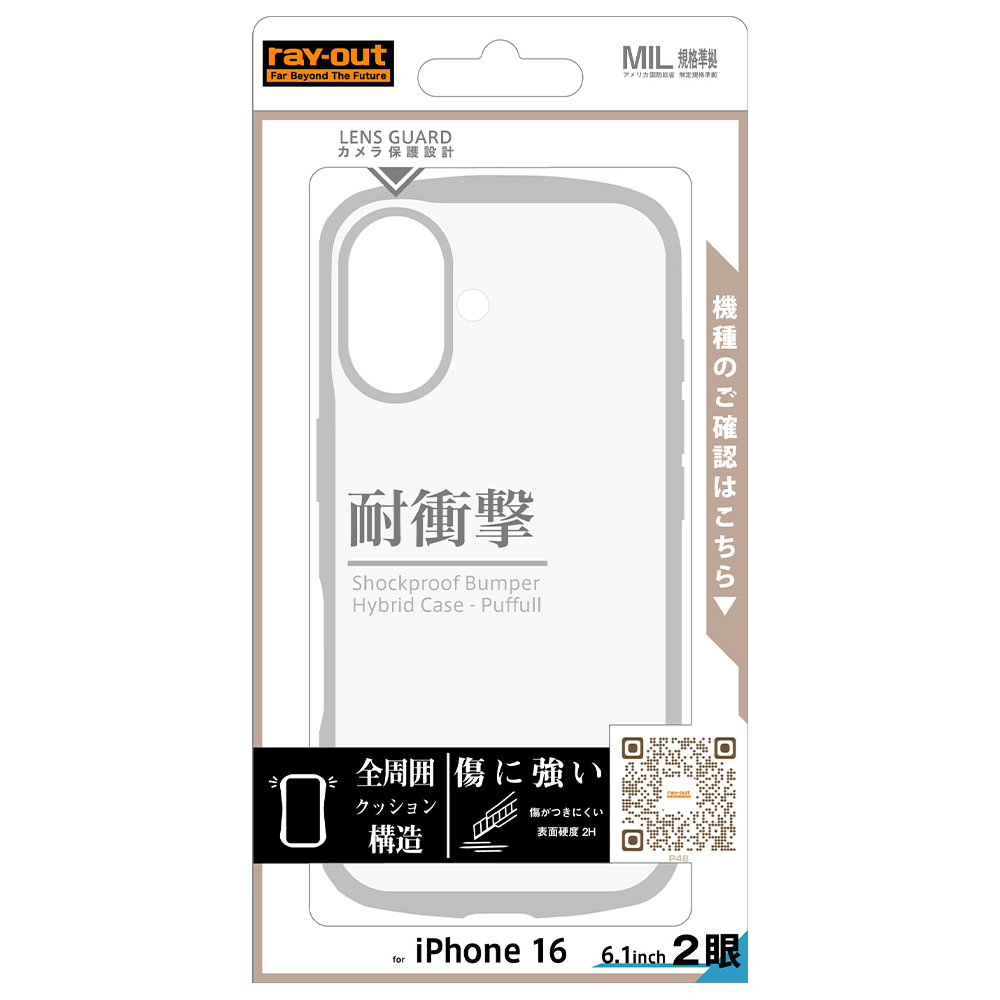 iPhone 16 / ハイブリッドタフケース Puffull +レンズガードリング / グレー