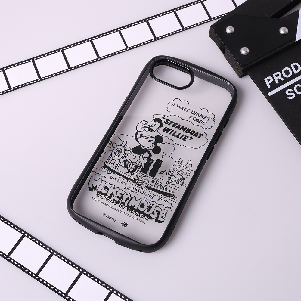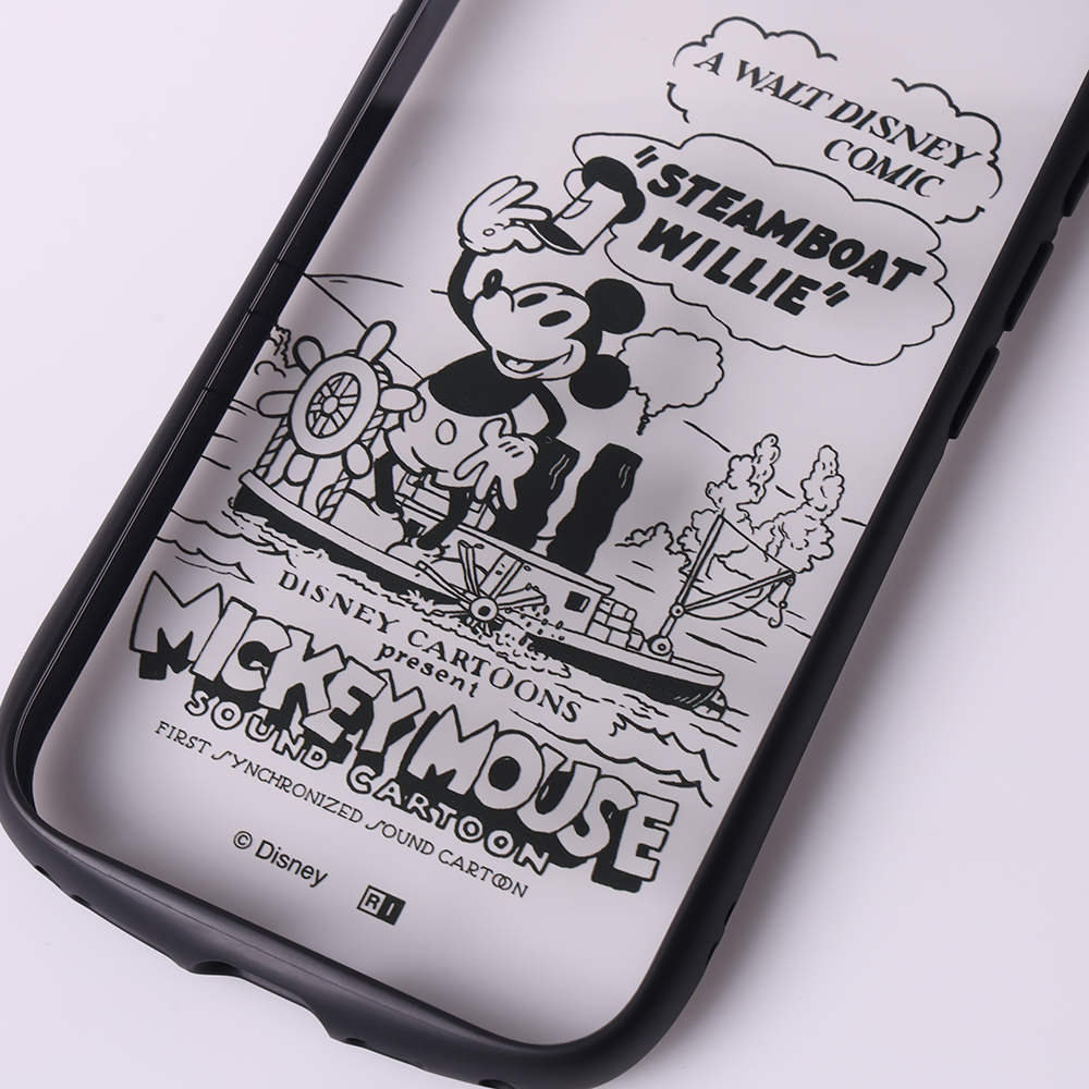 iPhone 16e / ディズニー / Puffull 衝撃吸収 バンパー ハイブリッドケース / ミッキー_蒸気船ウィリー