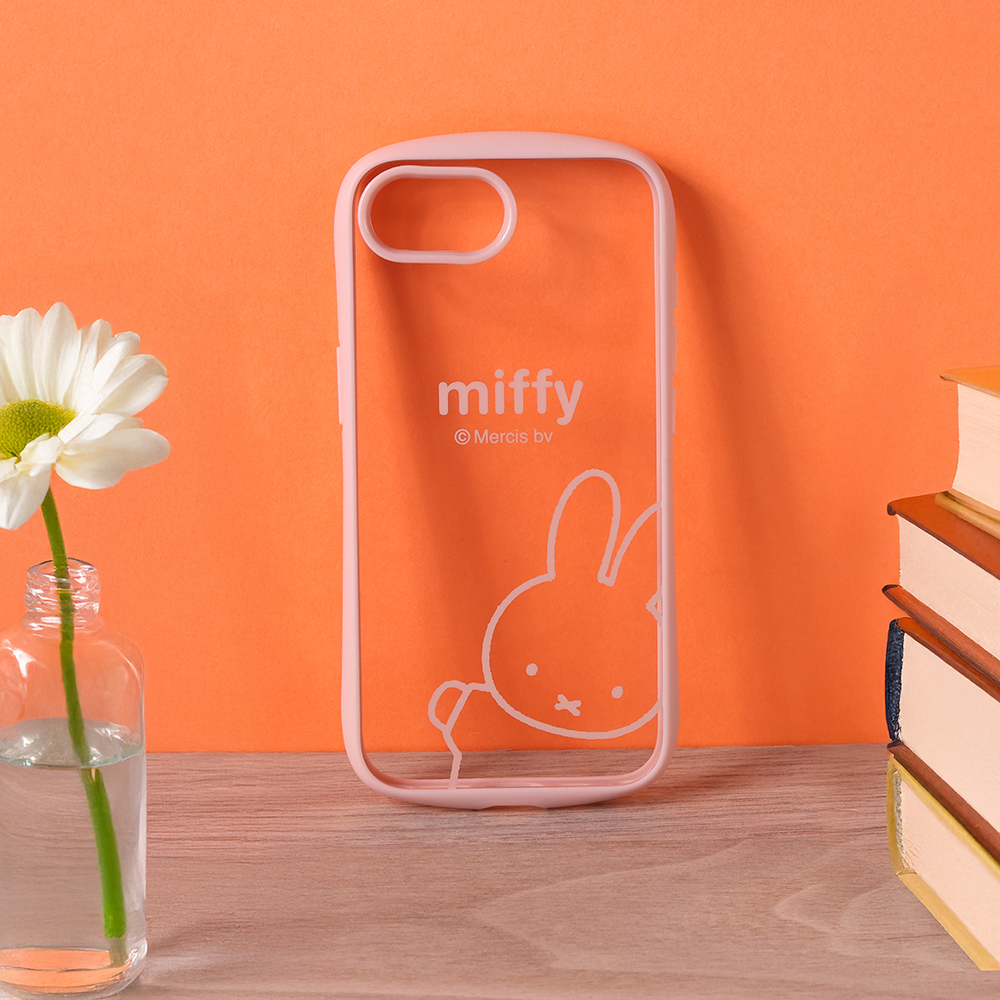 ミッフィーがひょっこり覗き込む姿が可愛いらしいデザインと、衝撃に強い安心感を兼ね備えたハイブリッドケース。