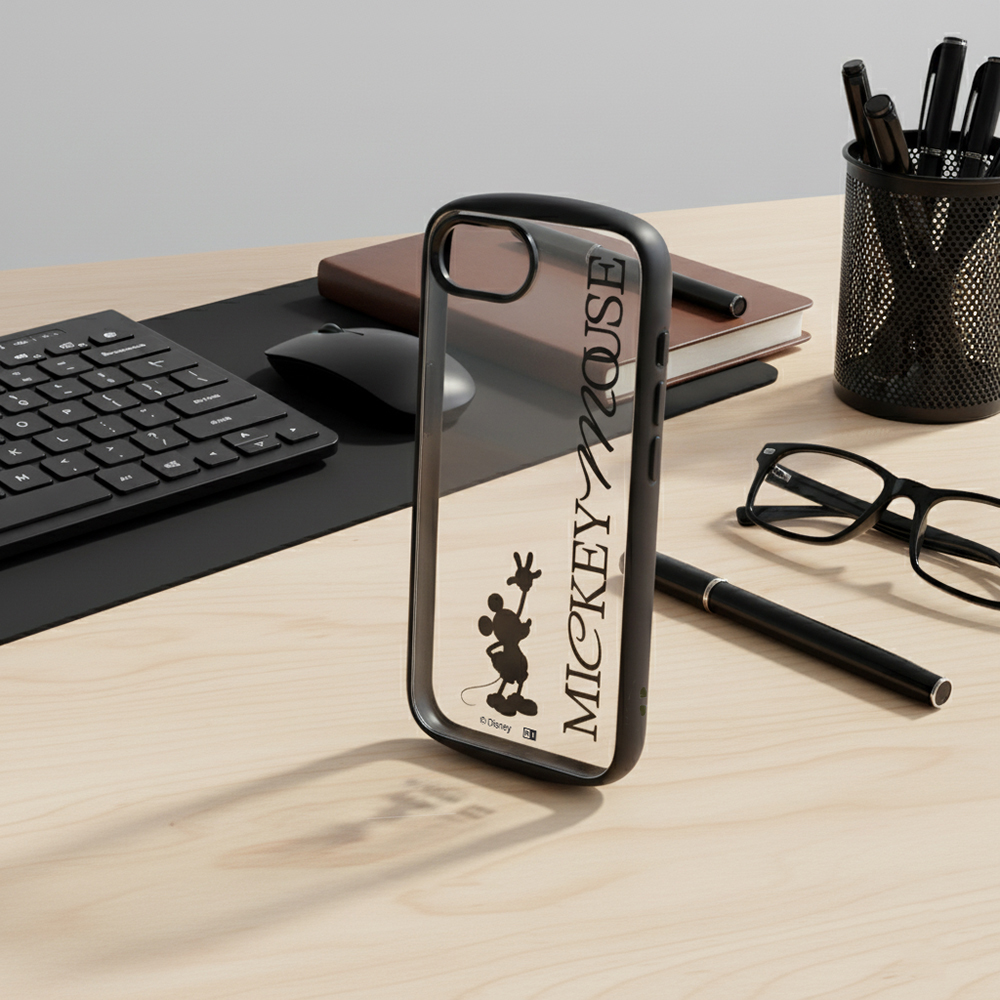 ミッキーのシックで可愛いらしいデザインと、衝撃に強い安心感を兼ね備えたハイブリッドケース。