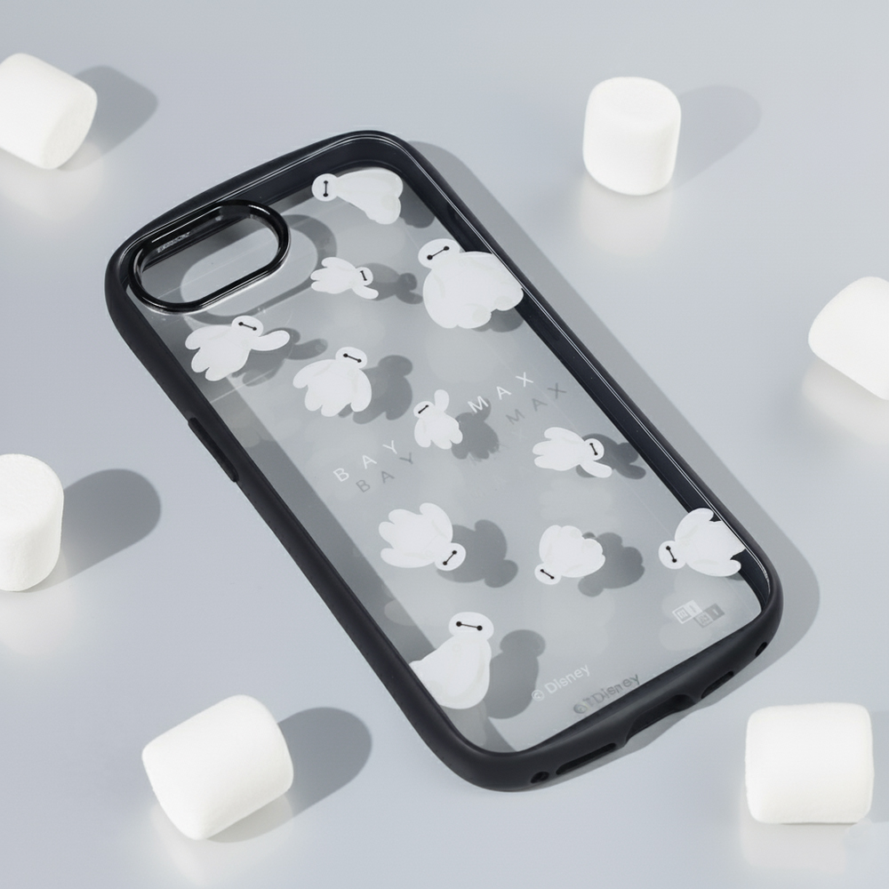 かわいいベイマックスがふわふわ浮かんでいるようなデザインと、衝撃に強い安心感を兼ね備えたハイブリッドケース。