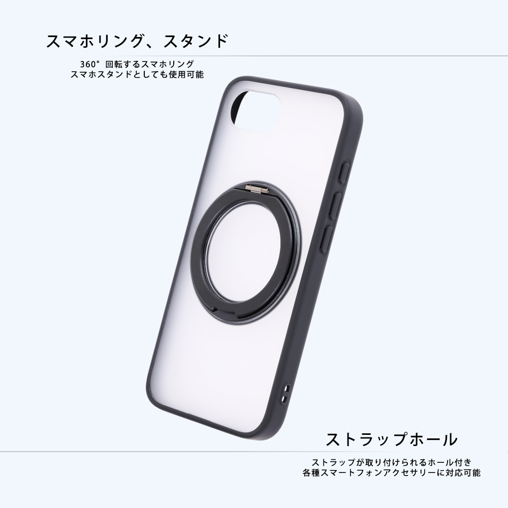スタンドとしても使える便利なリングは、カラーをケースと合わせた統一感のあるデザイン。