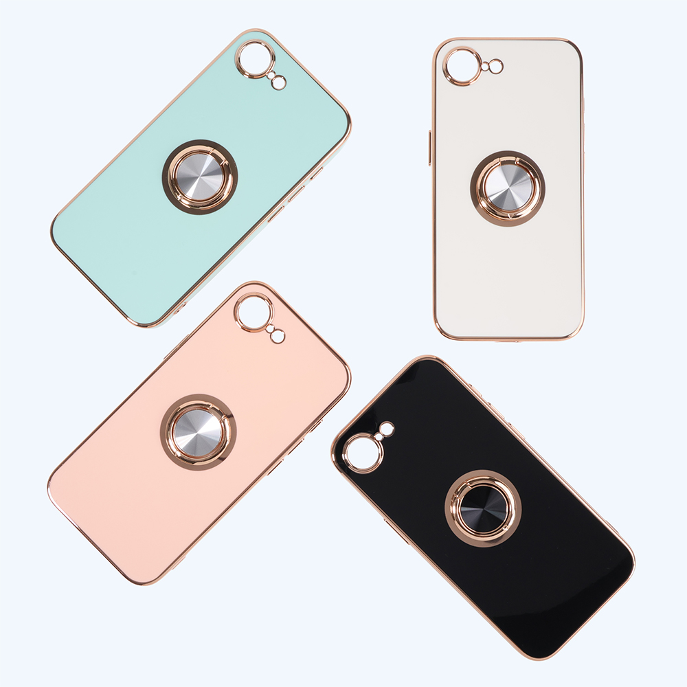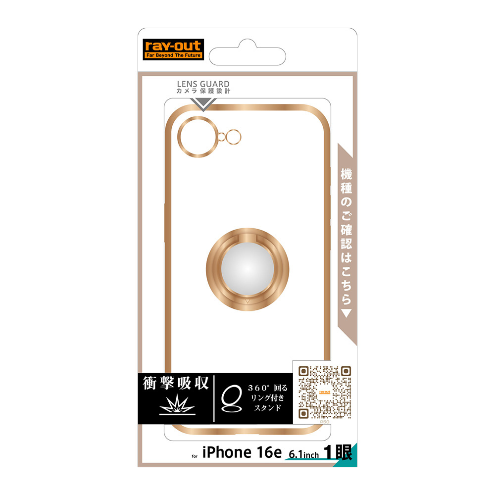 iPhone 16e / ソフトケース 精密設計 フレームメッキ リング付き / ホワイト/ゴールド