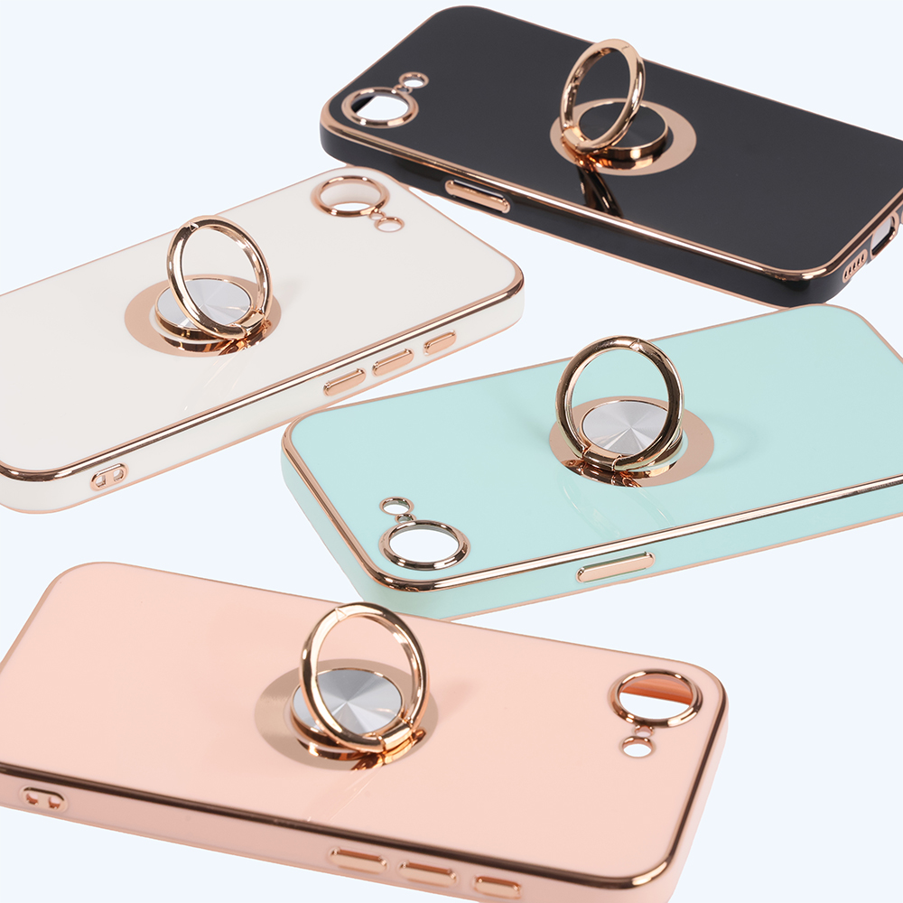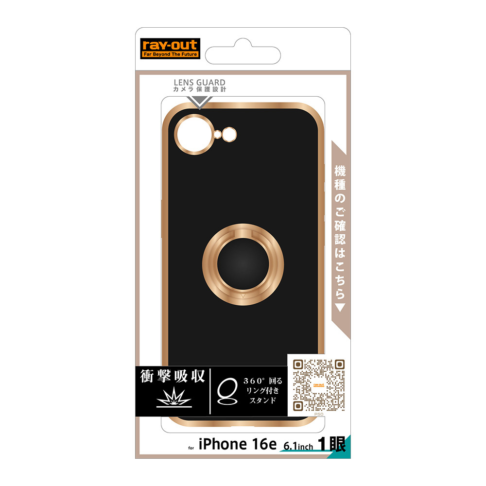 iPhone 16e / ソフトケース 精密設計 フレームメッキ リング付き / ブラック/ゴールド