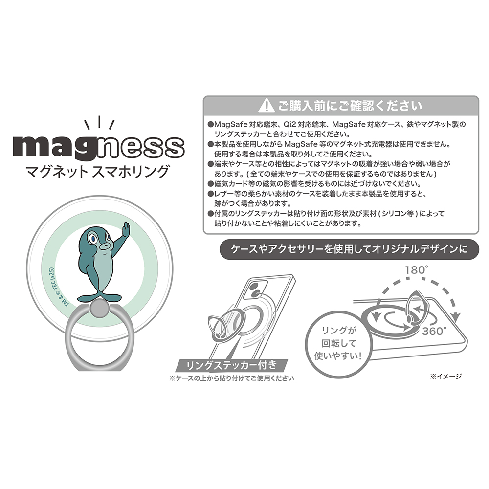粘着タイプのリングステッカー付きなので、お好みのクリアケースなどにしっかり貼り付けできる。ケースを選ばず自由にカスタマイズできます。