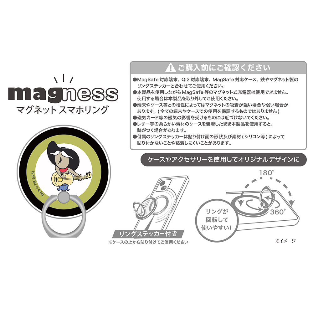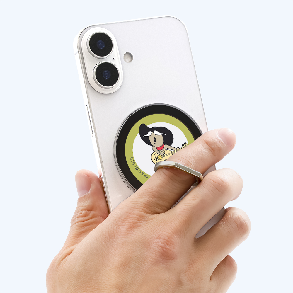粘着タイプのリングステッカー付きなので、お好みのクリアケースなどにしっかり貼り付けできる。ケースを選ばず自由にカスタマイズできます。