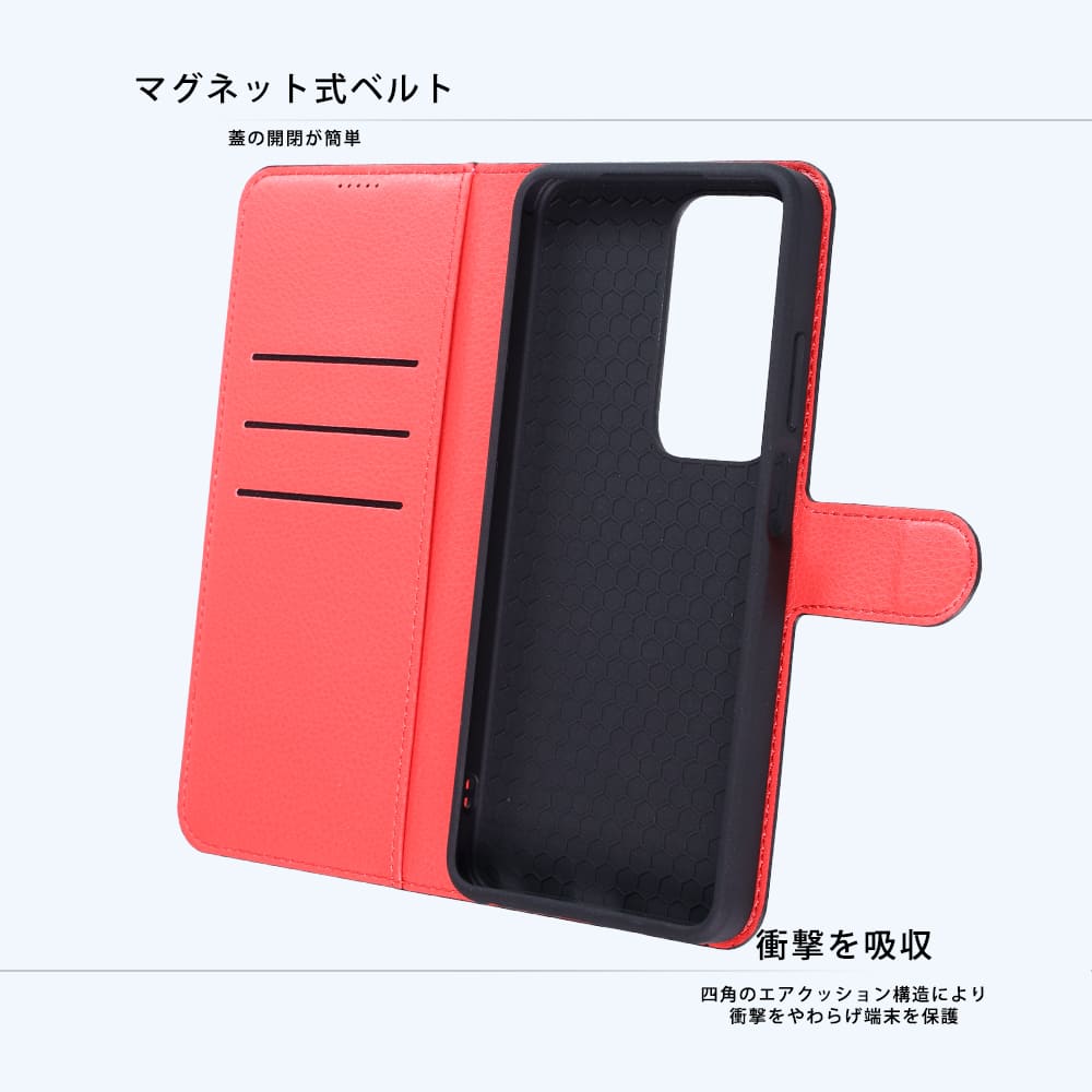 A3 5G後継 / 手帳型ケース シンプル マグネット / ブラック/レッド