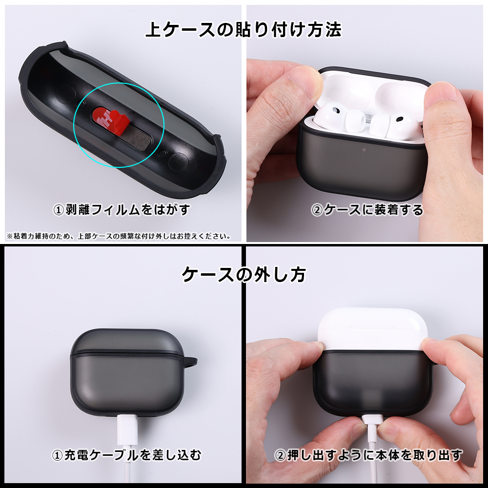 機能性も充実。ケースを装着したままワイヤレス充電に対応し、充電のたびにケースを取り外す手間がありません。持ち運びやバッグへの取り付けに便利なカラビナが付属しているため、紛失を防ぎ、外出先でも活躍します。