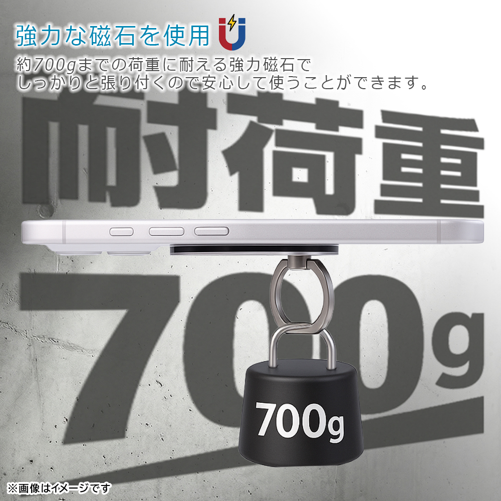 マグネット仕様で取り外しが簡単。リングの角度を調整可能なので、縦でも横でも操作可能、スタンド機能としても利用できます。