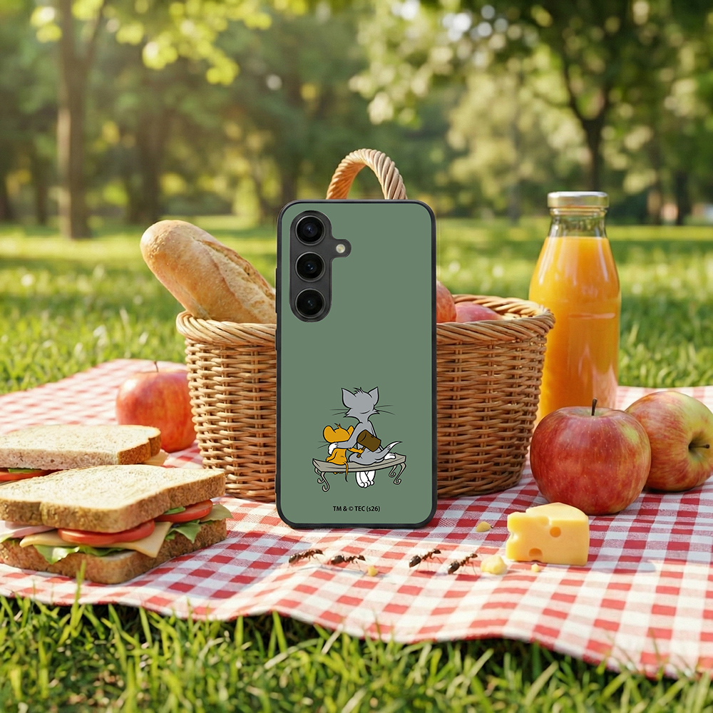表面硬度2Hの背面に、トムとジェリーらしいデザインをあしらったハイブリッドケース。