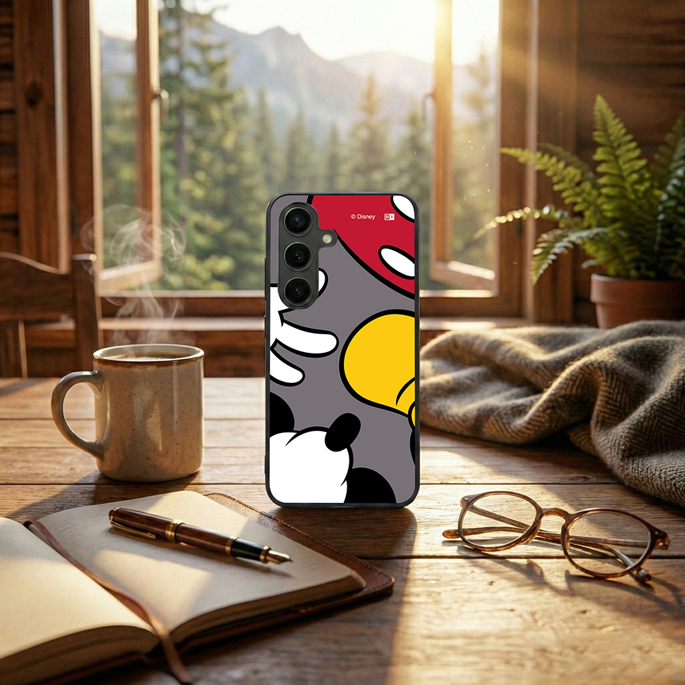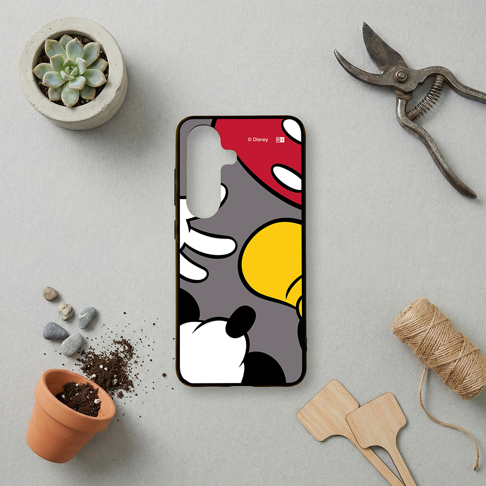 表面硬度2Hの背面に、ミッキーマウスのアイコニックなパーツを大胆に切り取った、ポップでユニークなデザインをあしらったハイブリッドケース。
