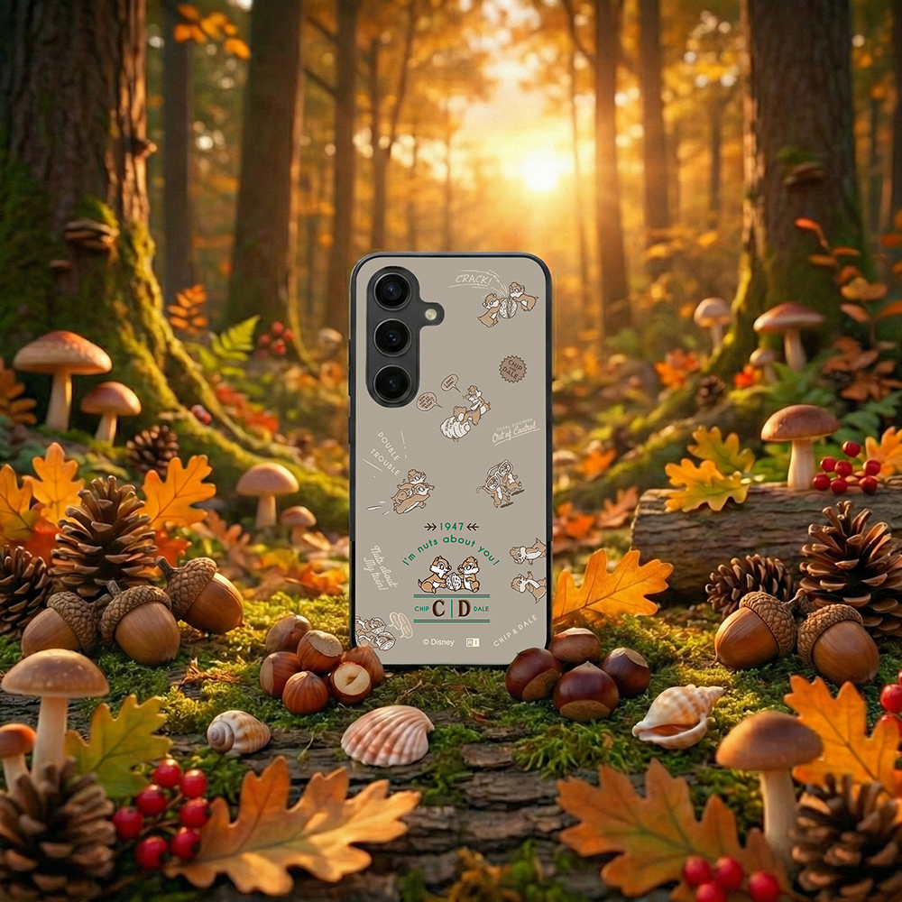 表面硬度2Hの背面に、チップ&デールのユーモラスなデザインをあしらったハイブリッドケース。
