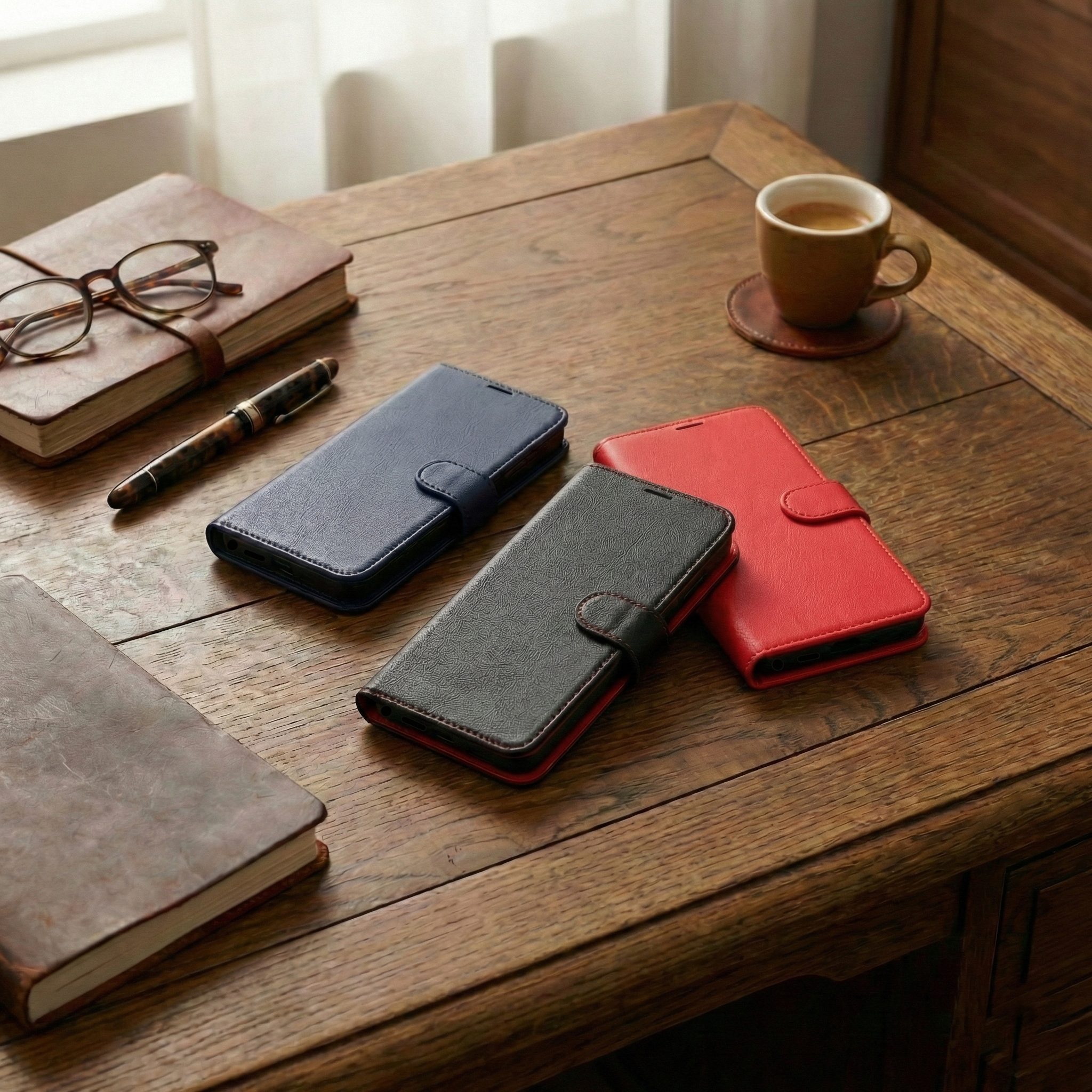 衝撃に強く、日常使いに便利な多機能手帳型ケース。