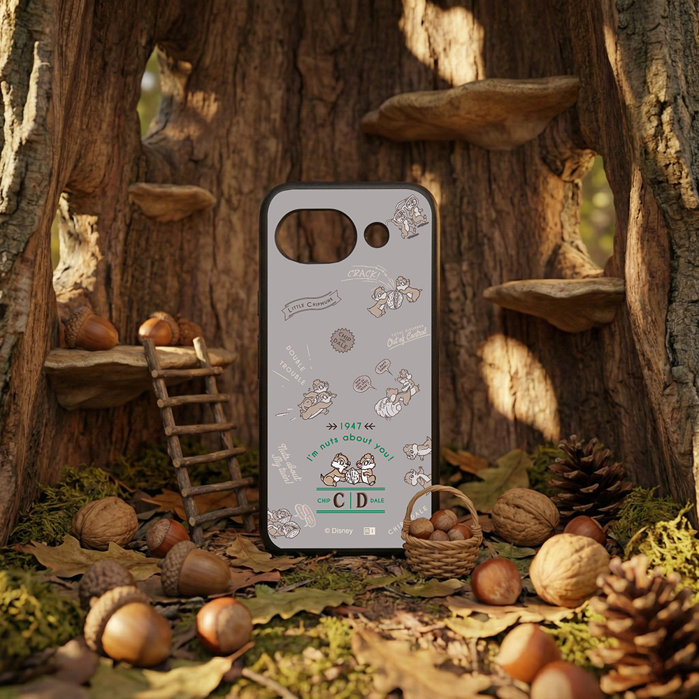 表面硬度2Hの背面に、チップ&デールのユーモラスなデザインをあしらったハイブリッドケース。