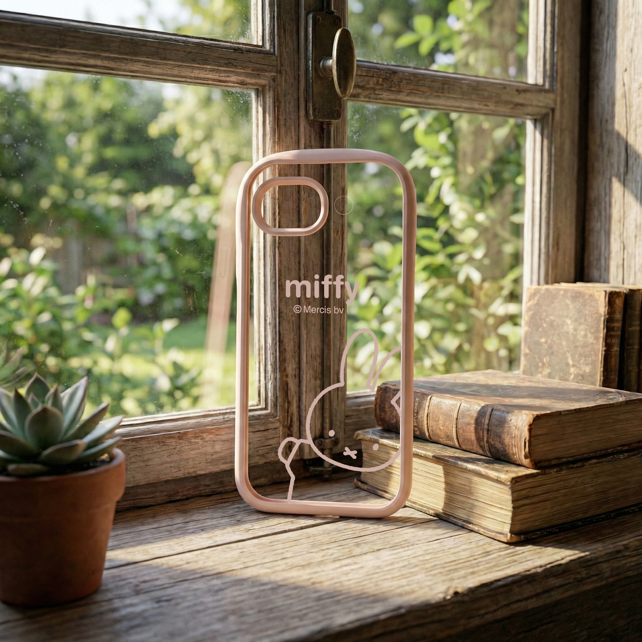 ミッフィーがひょっこり覗き込む姿が可愛いらしいデザインと、衝撃に強い安心感を兼ね備えたハイブリッドケース。