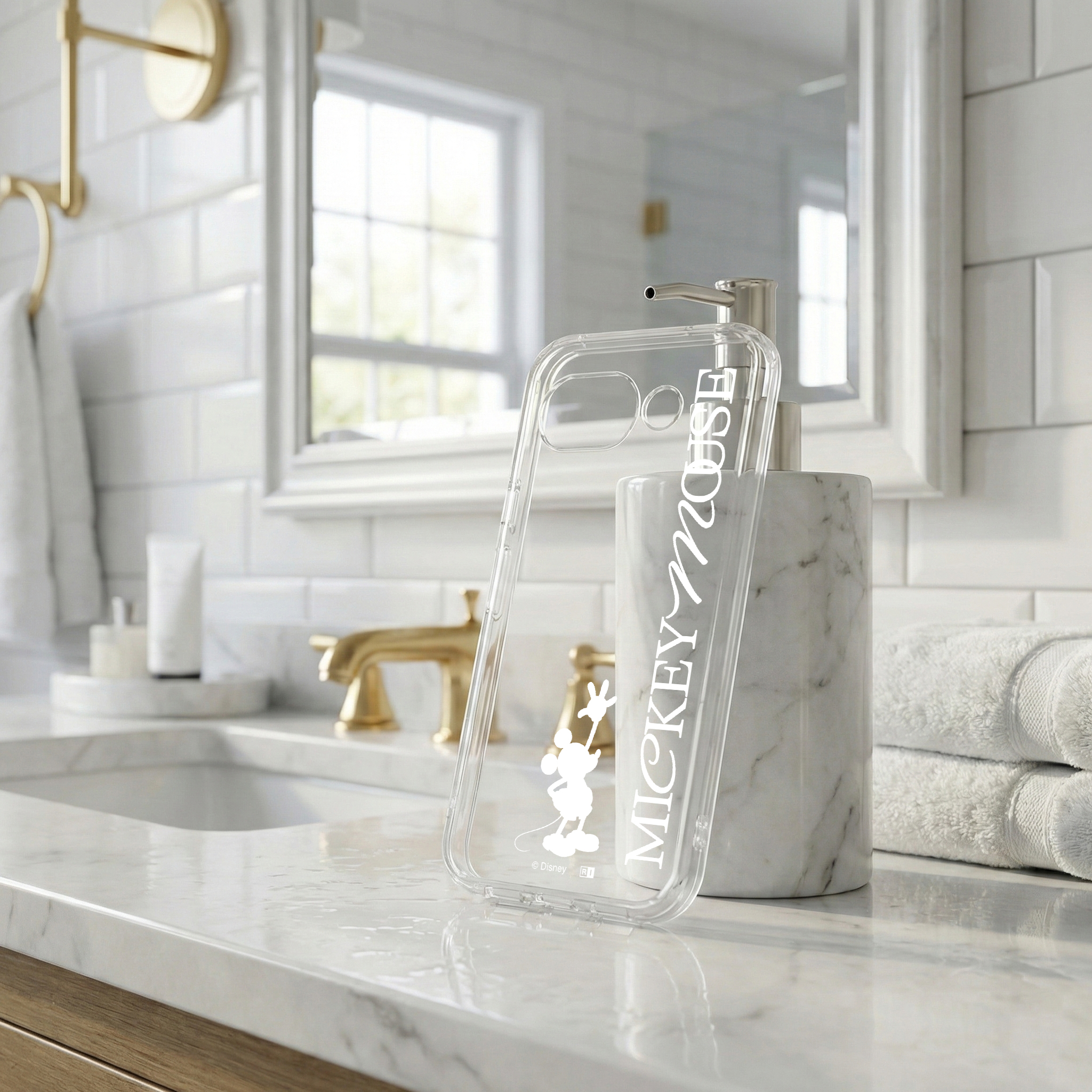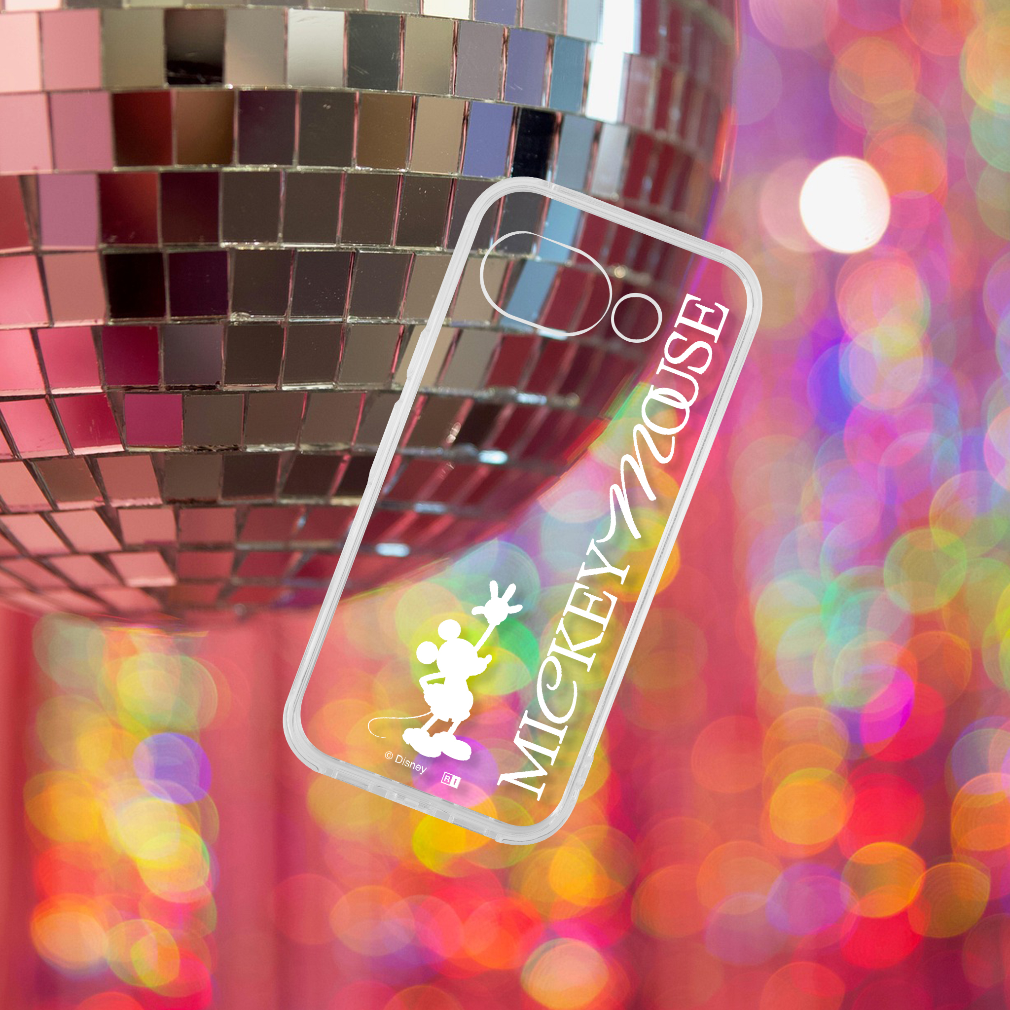 シンプルで可愛いらしいミッキーのデザインが楽しめる透明感のあるハイブリッドケース。