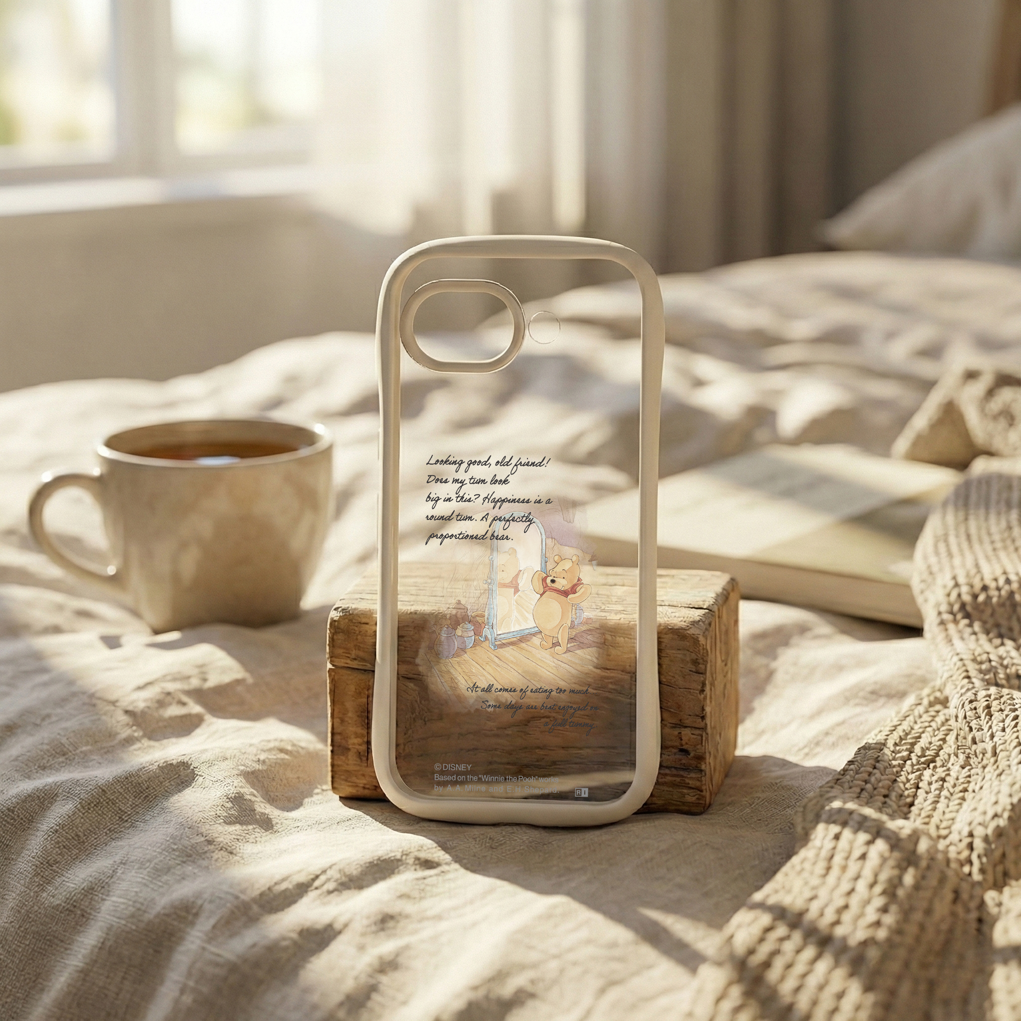 プーさんのまるいおなかがなんとも可愛いらしく心が和むようなデザインと、衝撃に強い安心感を兼ね備えたハイブリッドケース。