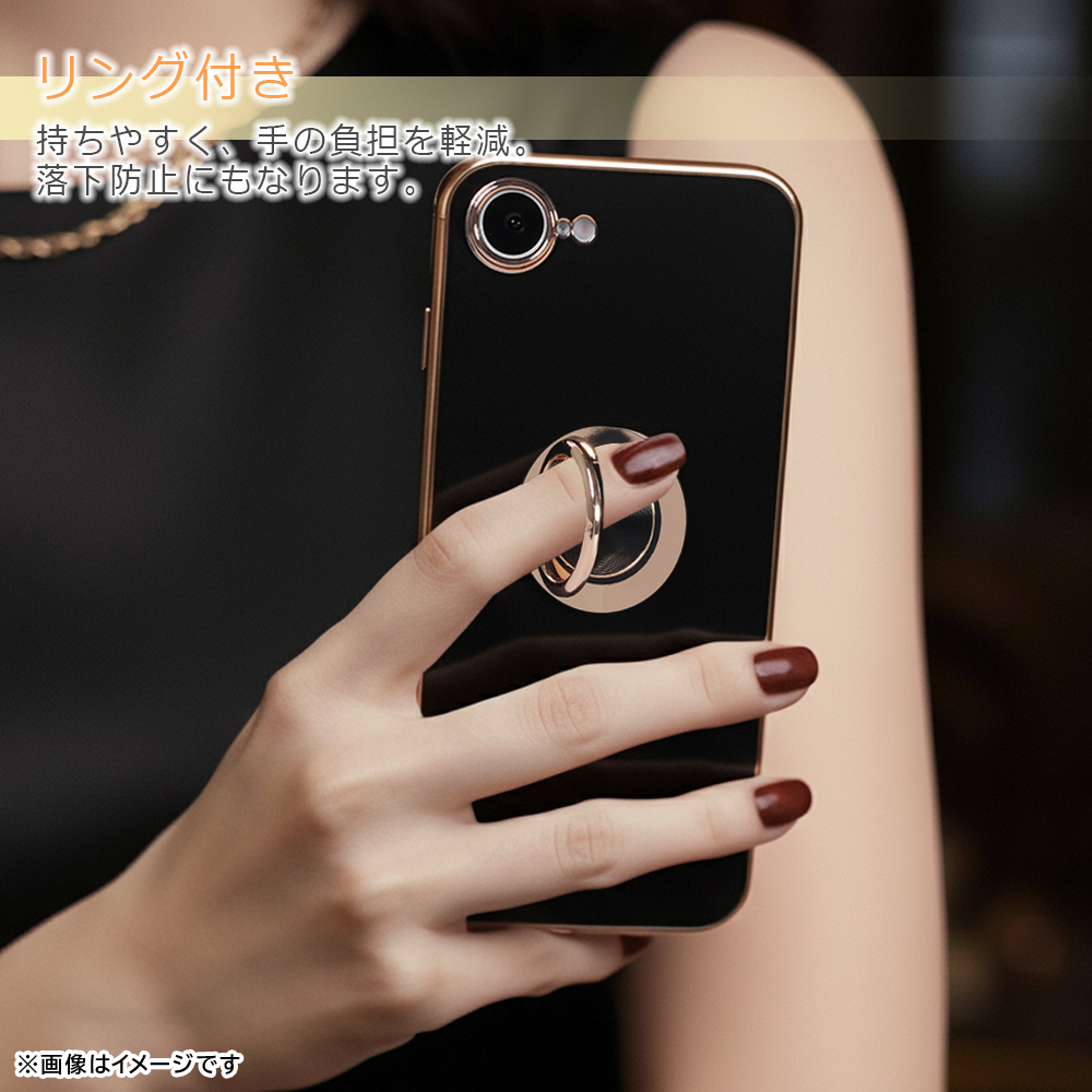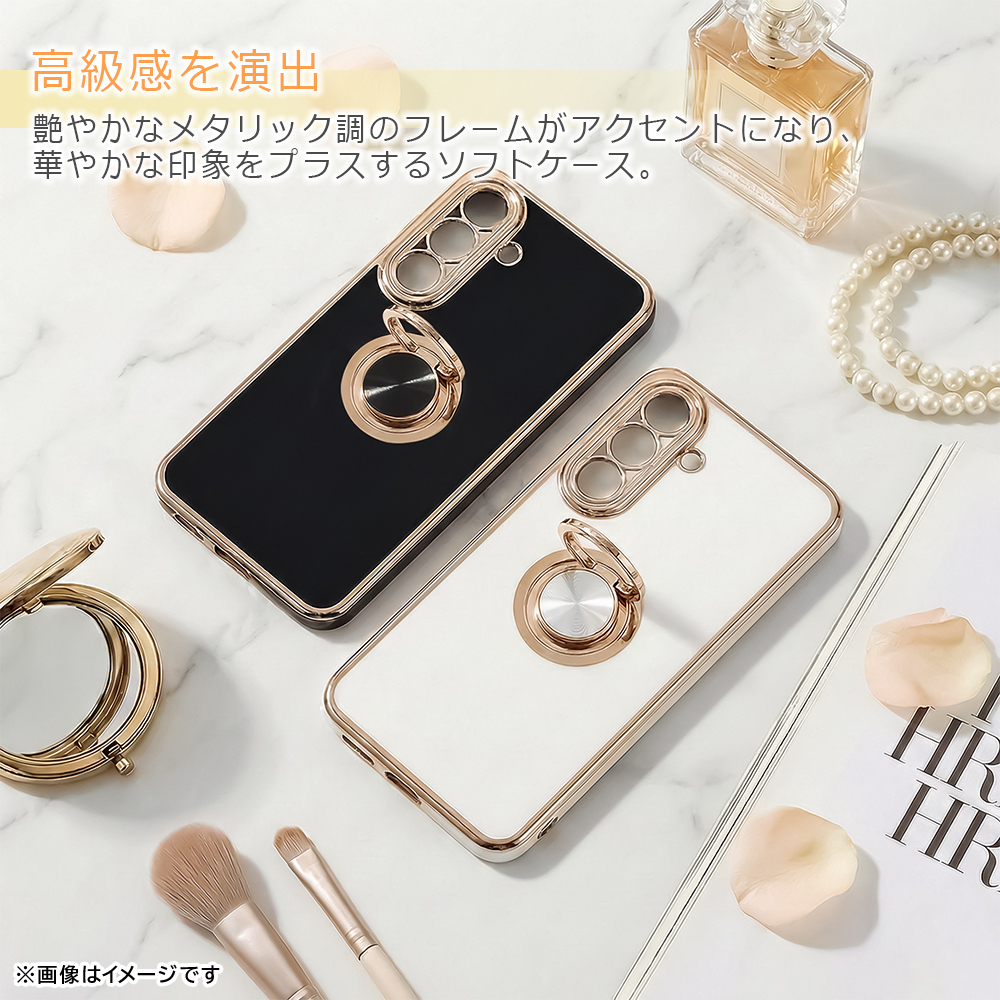 Google Pixel 10a / ソフトケース 精密設計 フレームメッキ +リング / ブラック/ゴールド