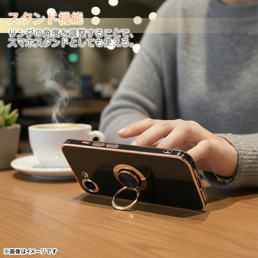 背面のリングは、落下防止やスタンドとしても使える便利なつくりです。