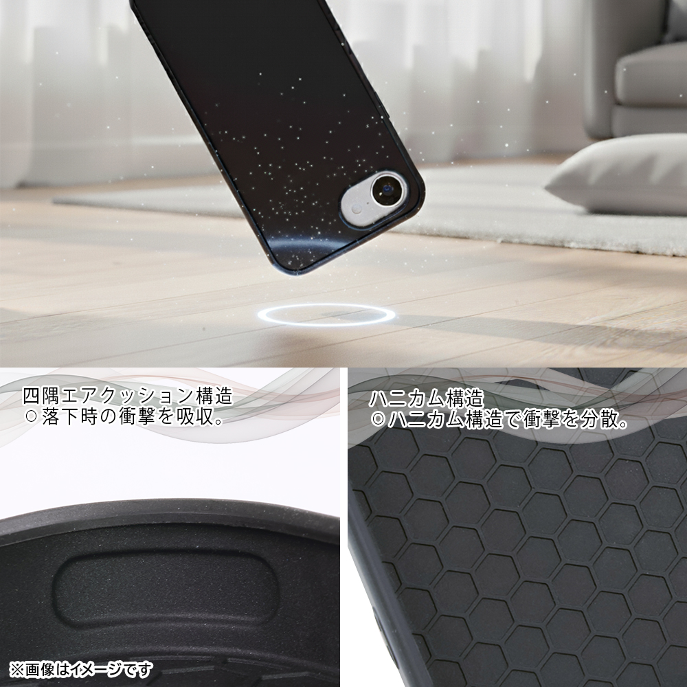衝撃に強いTPUと傷に強いポリカーボネートの2重構造で、端末をしっかり保護します。